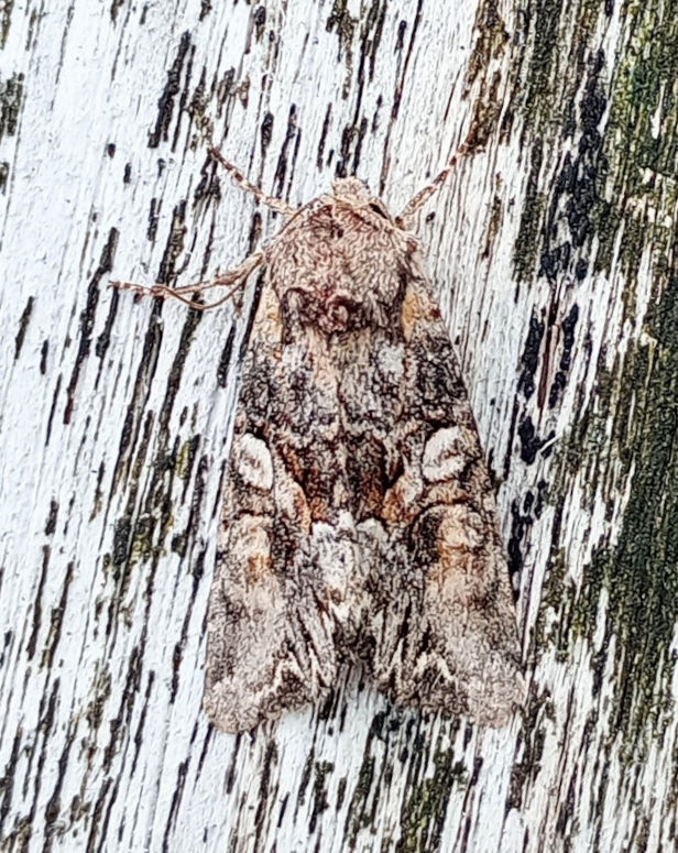 Pale-shouldered Brocade L. thalassina. Larva feeds on Birch, Oak, Broom, Bog-myrtle, Heather, Dyer's Greenweed and Bramble, over-wintering as a pupa.