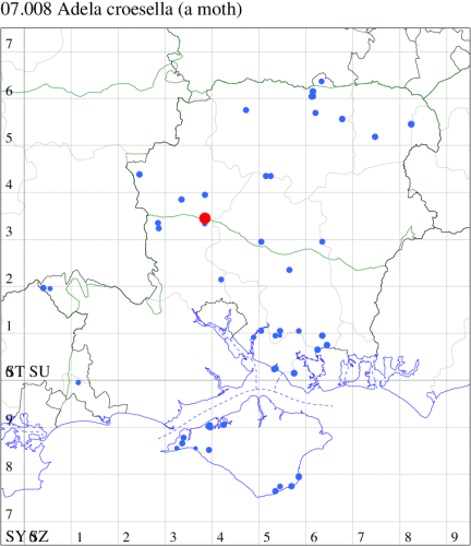 VC11: Ringwood, present, field obs., , 12 Jun (ASho); Linford, one, field obs., 15 May (IHayw); Lyndhurst, NF, present, field obs., , 01 Jun (SRC); Pignal Inclosure, NF, one, field obs., 25 May; Parkhill Inclosure, NF, 20, field obs., two leks, 25 May (SKee); Stockbridge, present, field obs., , 29 May (MFow); Sholing, Southampton, one, field obs., 28 May (PAB); Westend Copse, Southampton, 10, field obs., 01 Jun (LJoy); Wildern LNR, Hedge End, one, field obs., 11 Jun (TCrw); Crab Wood, Winchester, 12, field obs., 17 May; present, field obs., abundant, 05 Jun; present, field obs., 12 Jun (DAS); Boyatt Wood, Eastleigh, one, indoors, 15 Jun (SJon); The Moors NR, Bishop's Waltham, one, field obs., 13 Jun (DTru); The Holt, Bishop's Waltham, one, field obs., 31 May (PAB); Waterlooville, present, field obs., , 18 Jun (YEva); West Meon, one, field obs., 10 Jun (AMD); Lepe Point LNR, one, field obs., 24 May (PGS);