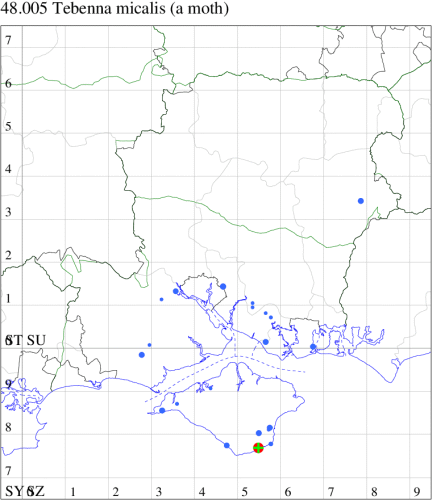 VC10: West Shanklin, pupa, present, field obs., 29 Sep (IOu); Shanklin Chine, larva, present, field obs., common, on Figs, 14 Aug (MGT); Bembridge, larval feeding signs, present, field obs., on Ficus carica. Webbing and feeding signs, 30 Jun (PBard);