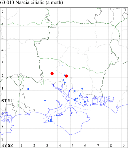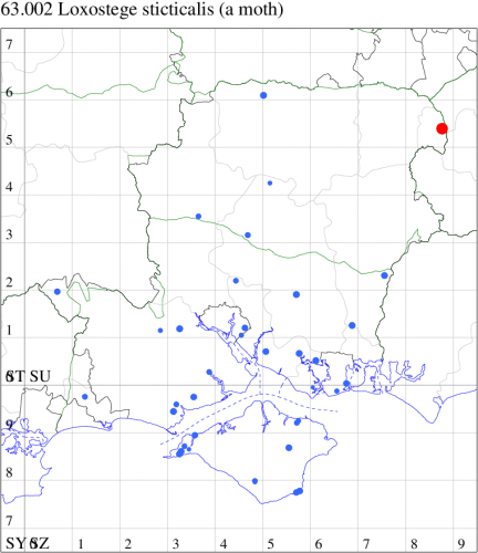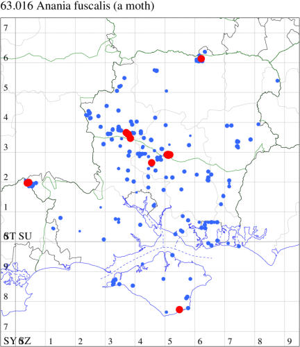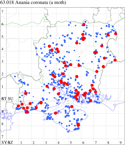 VC12: Earliest: Farnham, 15 Mar, 0 (Bird) Latest: Goodworth Clatford, 03 Aug, 1 (WLid, TJN, LFom) Max count: Newton Stacey, 03 Jul, 5 (GCE)