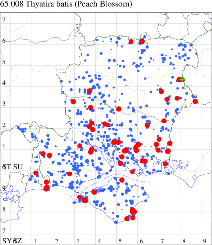 VC11: Swaythling, Southampton, present, 14 May (MEdg); Southampton, one, 09 May; one, 11 May; one, 02 Jun; one, 29 Jul (MGP); Sholing, one, 03 Jun (ARC); West End, one, 25 Jun (AMD); Funtley, one, 29 May (TDC); Lee-on-Solent, one, 25 Jun (IHrg); Fareham, one, 20 May; one, 24 Jun (MLO); Portsmouth, two, 03 Jun (IRT); Waterlooville, two, 25 May; four, 29 May; one, 21 Jun; one, 25 Jun (DWhe); Langstone, one, 31 May (HuWhi); Christchurch: Cross Way, one, 25 Jun (LPyk); Stanpit Marsh LNR, one, 22 Jun (PAB); New Milton, one, 08 Jun; one, 23 Jun (RPH); Pennington, one, 03 Jun (RFC);