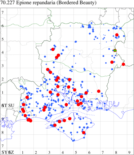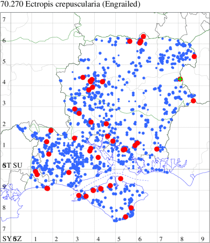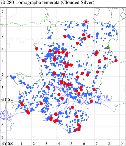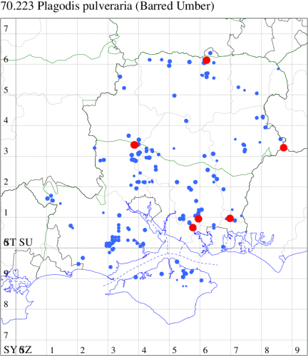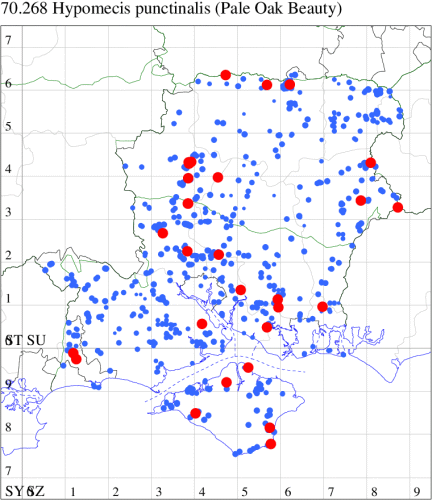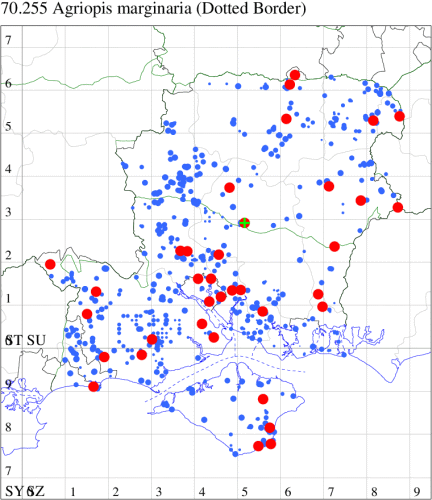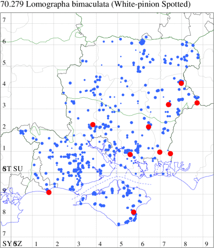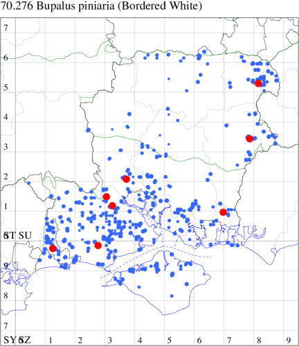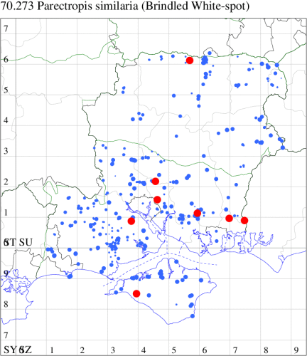 VC11: Marchwood, one, 17 Sep (CTha); Lee-on-Solent, one, 31 Aug; one, 02 Sep; one, 03 Sep; one, 06 Sep; one, 07 Sep; one, 08 Sep (IHrg); Hengistbury Head, two, 06 Jun (RPH); Hengistbury Head NNR, four, 15 May (MJef); three, 17 May (RPH); three, 18 May; four, 19 May; four, 20 May (MJef); one, 22 May (BKin det. MJef); six, 23 May (RPH); three, 30 May (BKin det. MJef); one, 02 Jun (RPH); two, 10 Jun (BKin det. MJef); one, 12 Jun (MJef); one, 11 Aug; one, 12 Aug (MoTay det. MJef); one, 14 Aug (RPH); two, 27 Aug (HengistH det. MJef); one, 29 Aug (MJef); one, 03 Sep (HengistH det. MJef); one, 14 Sep (BKin det. MJef); four, 15 Sep; one, 18 Sep (HengistH det. MJef); Hengistbury Head, four, 27 Aug (MJef); Pennington, one, 01 Sep (RFC)