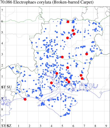 VC12: Earliest: North Waltham, 13 Apr, 1 (AJon) Latest: Windmill Hill, Chalton, 23 Oct, 1 (CJP) Max count: Stockbridge Down, 06 Aug, 8 (HVau)