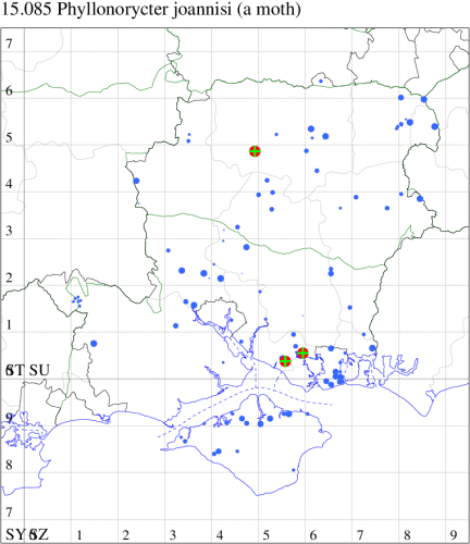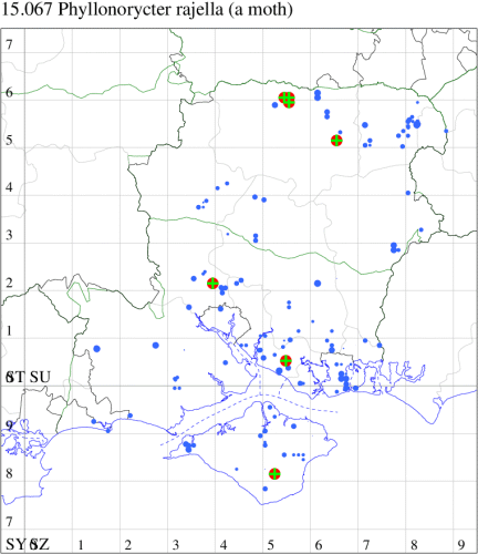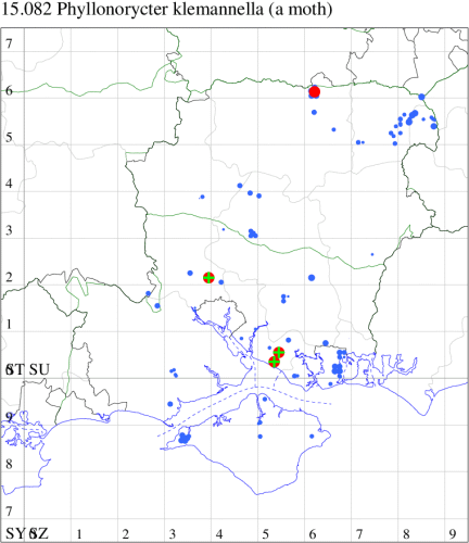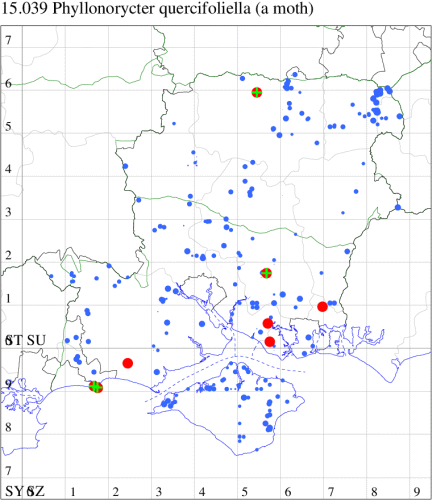 VC11: Peartree Green, Southampton, mine, present, 06 Oct; Stanpit Marsh LNR, mine, present, on oak, 04 Oct; larva, five, field obs., on oak, 04 Oct (PAB); Sway, one, 23 Jul (SKee);