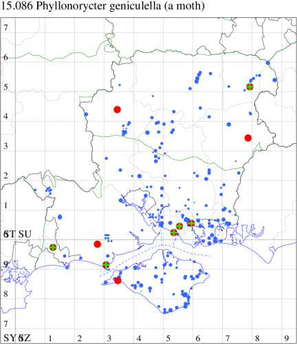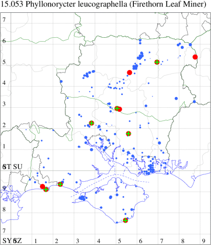 VC11: Swaythling, Southampton, one, 30 Aug (MEdg); Itchen Valley CP, one, 19 Jul (CTha); Stubbington, two, 25 Oct; one, 01 Nov (DPH); Lee-on-Solent, one, 02 Jul (IHrg); Fareham, two, 15 Oct (IMcP); Cams Bay, Fareham, mine, present, 08 Sep (AMD); Waterlooville, two, 13 Aug; one, 26 Aug; one, 13 Sep; one, 24 Sep; one, 28 Oct; one, 31 Oct; one, 10 Nov (DWhe); West Meon, mine, present, on Fagus, 10 Jun; Oxenbourne Down, mine, present, 04 Oct (AMD); Christchurch: Cross Way, one, 16 Oct; one, 22 Oct (LPyk); Wick Fields, Hengistbury Head, vacated mine, present, several, 19 Feb; Hengistbury Head, mine, present, on English Oak, 22 Aug (MJef); vacated mine, present, 03 Sep; Hengistbury Head NNR, mine, present, on beech, 22 Oct (RPH det. MJef); mine, present, quercus ilex, 27 Oct (JOug); Sway, one, 30 Jul; one, 22 Oct; one, 29 Oct (SKee); Pennington, one, 12 Apr (RFC); Browndown, five, field obs., 30 Apr; five, field obs., 01 May (IHrg); Sinah Common, mine, present, on Quercus ilex, 12 Jan; three, at dusk, 07 Nov (AMD);