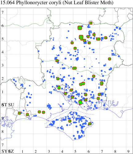 VC12: Stockbridge Down, mine, present, corylus, 18 Aug; Magdalen Hill Down NR, mine, present, corylus, 18 Aug (JOug); Micheldever, mine, present, 18 Oct (AMD); Kingsclere: Frith Common, mine, present, a few on Corylus avellana, 17 Oct; Great Deane Wood area, Malshangar, mine, present, corylus, 10 Nov; Hay Wood, Malshangar, mine, present, corylus, 10 Nov; Kingsclere: Sandford Woods, mine, present, a few on Corylus avellana, 17 Oct; KIngsclere: Skittle Hill Copse, mine, present, a few on Corylus avellana, 17 Oct; Kingsclere: Wheathold Farm, mine, present, frequent on Corylus avellana, 17 Oct; Campdown, Havant, mine, present, mine on Corylus, 02 Dec; Mapledurwell: Nunnery Hill, mine, present, on Corylus avellana, 11 Nov; Mapledurwell: White Hill, mine, present, on Hazel, 11 Nov (MJW)