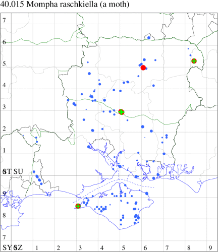 VC11: Fishlake Meadows, Romsey, two, field obs., 05 May (DAS); Netley, one, field obs., 09 Feb (ARC); Bevois Valley, Southampton, one, field obs., 03 May (MCrei); Sholing, one, 09 Feb (ARC); Itchen Valley C.P., one, 19 Jul (F.M.G.); Winchester, present, field obs., 18 May (JOug); Funtley, one, 01 Jul; one, 19 Jul (TDC); Fareham, one, 24 Jun (ADT); one, 02 Jul; two, 11 Jul; one, 17 Jul (IMcP); Milton Common, larval feeding signs, present, field obs., multiple spinnings on hoary willowherb. At least one had a larva, 02 Jul (IRT); two, field obs., tapped from hoary willowherb, 02 Jul (RJD); Portsmouth, one, 12 Apr; one, 07 May; one, 09 May; one, 14 Jul; one, 16 Jul (IRT); St Clair's Meadow NR, Droxford, larval spinning, present, field obs., large numbers of spun shoots on Epilobium hirsutum, larvae found in two, 03 Jun (RJD); Pennington, one, 19 Mar (RFC);