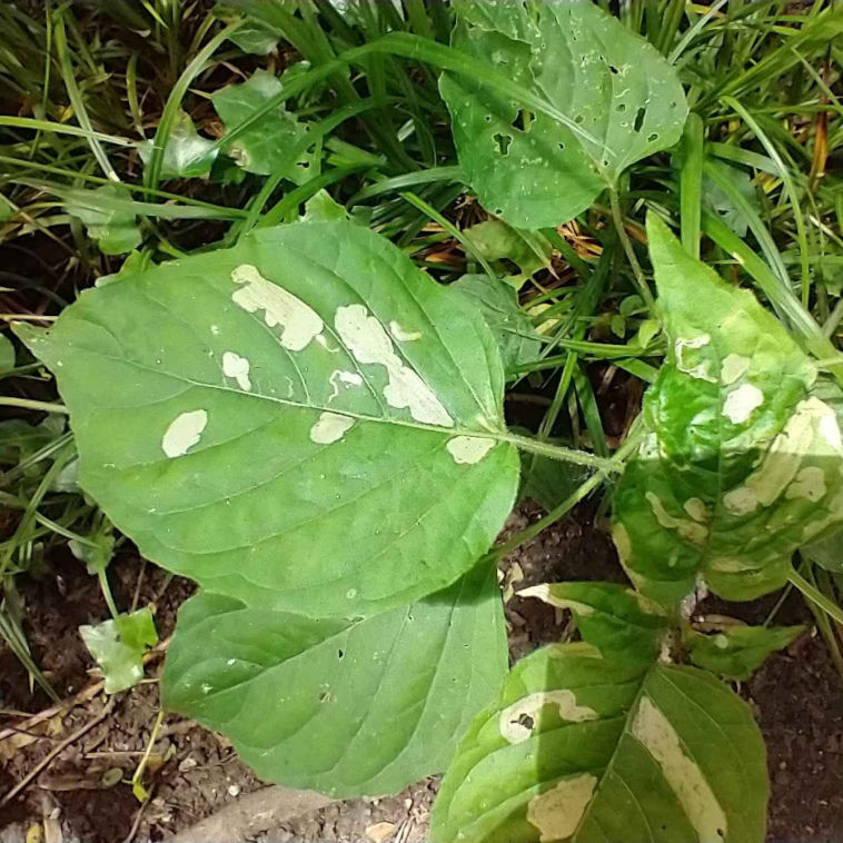 VC10: Walter's Copse, Newtown, vacated mine, present, on leaves of Circaea lutetiana. White mines with scattered frass. Photo 40.011-10-26Jun24-1, 26 Jun; Shanklin*, vacated mine, present, on leaves of Circaea lutetiana, 27 Jun (PBard);