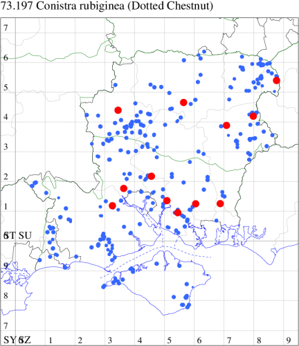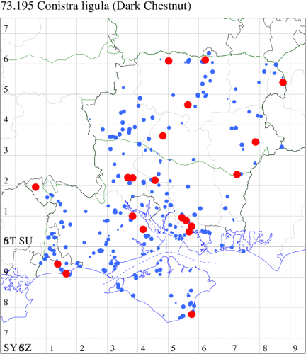 VC11: Earliest: Horndean, 07 May, 2 (PHog) Latest: Fareham, 07 Nov, 1 (MLO) Max count: Lee-on-Solent, 01 Sep, 73 (IHrg)