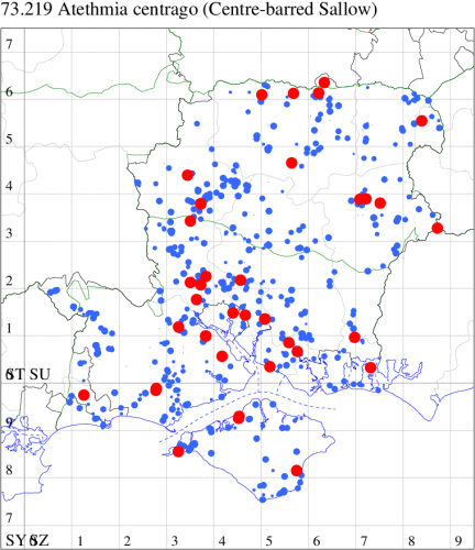 VC10: Earliest: Shanklin, 30 May, 5 (IOu) Latest: Great Thorness, 22 Sep, 1 (BriJon) Max count: Shanklin Upper Chine, 02 Sep, 26 (IOu)