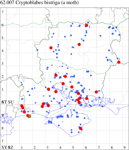 VC11: Marchwood, one, 25 Jun (CTha); Mottisfont, one, 11 Jul; one, 14 Jul (TSto); Botley, one, 07 Jun; one, 09 Jul; one, 12 Jul; one, 16 Jul; one, 30 Jul (SLB); Portsmouth, one, 26 Jun (IRT); Hengistbury Head NNR, one, 24 Jun; one, 25 Jun (RPH); one, 30 Jun (BKin det. MJef); two, 12 Jul (RPH); Hengistbury Head, one, 30 Jul (MJef); Burton, nr Christchurch, one, 11 Jun (JStw);
