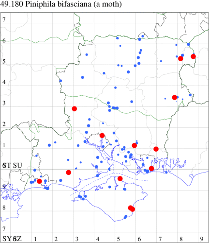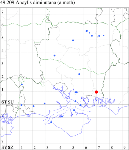 VC11: Marchwood, one, 31 Jul (CTha); Itchen Valley C.P., two, 19 Jul (F.M.G.); Stubbington, one, 29 Jun; one, 19 Jul (DPH); Lee-on-Solent, one, to pheromone lure, jAN Lure, 02 Jul (IHrg); Fareham, one, 20 Jul (ADT det. RJD); one, 30 Jul (IMcP); two, 25 Jun; one, 23 Jul (MLO det. RJD); Waterlooville, one, 30 Jul (DWhe); Christchurch: Cross Way, one, 26 Jun; one, 10 Jul (LPyk det. MJef); Tuckton, Bournemouth, one, 03 Jun (APard);