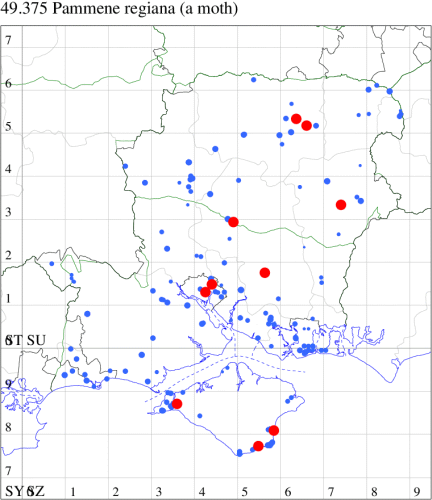VC11: Marchwood, one, 03 Aug (TDCh); Romsey, one, 28 Aug (MJB); one, to pheromone lure, to FUN lure at 10.00, 12 May; one, to pheromone lure, to HYL lure, male, gen. det., 31 Jul; one, to pheromone lure, to HYL lure, male, gen. det., 11 Aug (NRJ det. DJG); Swaythling, Southampton, one, 24 Jun (MEdg); Allbrook, one, 16 Jun; one, 17 Jul; one, 23 Jul (SIng); Brownwich Cliffs, Titchfield, one, female det gen, 26 Jul (F.M.G. det. RJD); Stubbington, one, 25 Jun (DPH); Funtley, one, 29 May (TDC); Lee-on-Solent, one, to pheromone lure, jAN (1) & FUN (2) Lures, 30 Jun; one, 30 Jun; one, to pheromone lure, fUN Lure, 06 Jul; one, to pheromone lure, fUN Lure, 11 Jul (IHrg); Fareham, one, det gen, 26 Jun (MLO det. RJD); Portchester, two, 26 Jun (DH-J); Waterlooville, one, aRG lure, 29 May; one, 17 Jul (DWhe); Muscliffe, one, 19 Jun (CMur,MLan det. CMur); New Milton, one, 29 Jul (RPH); Sway, one, 19 Jul (SKee); Pennington, one, 09 Jul (RFC);