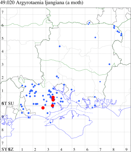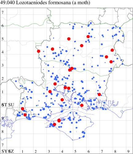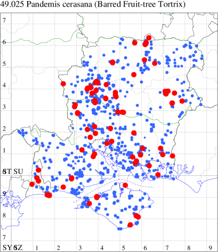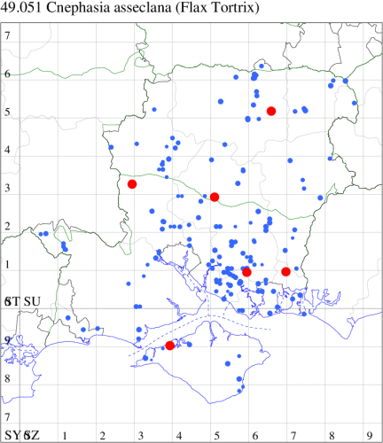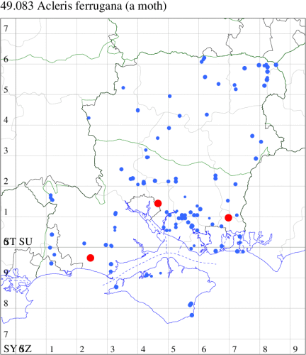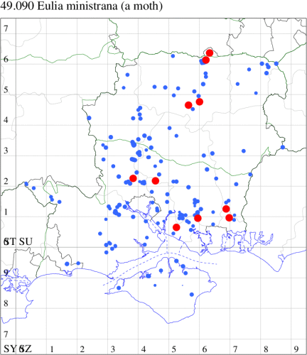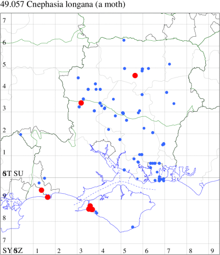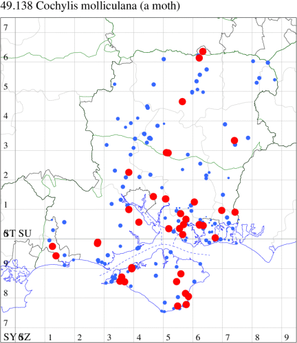 VC11: Romsey, one, 26 Jul (MJB); one, 30 Jul (NRJ); Hurn, one, 01 Aug; Hengistbury Head NNR, one, 05 Aug (MJef); one, 11 Aug (MoTay det. MJef); Burton, nr Christchurch, one, 12 Jul (JStw);