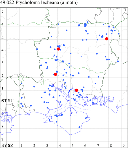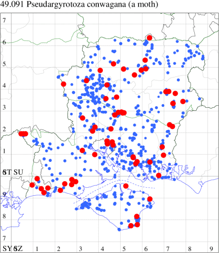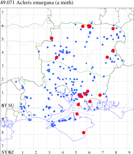 VC10: Earliest: Bonchurch, 15 Jun, 1 (JHa) Latest: Shanklin, 17 Sep, 1 (IOu) Max count: Osborne Wood, 01 Jul, 5 (IOu)