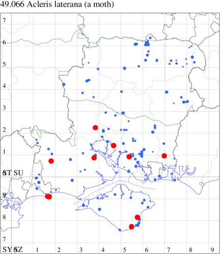 VC11: Marchwood, one, 11 Aug; one, 28 Aug (CTha); Romsey, one, 23 Jun (NRJ); Dibden Purlieu, one, 11 Aug (RAC); West End, two, 01 Sep (AMD); Brownwich Cliffs, Titchfield, one, 16 Aug (F.M.G.); Stubbington, one, 11 Aug (DPH); Funtley, one, 22 Jun; two, 25 Jun (TDC); Lee-on-Solent, two, 23 Jun; two, 25 Jun; one, 26 Jun; two, 30 Jun; two, 01 Jul; one, 02 Jul; one, 01 Sep; one, 07 Sep (IHrg); Fareham, one, 16 Aug (ADT); one, 12 Aug; one, 14 Aug; one, 17 Aug; one, 02 Sep (MLO); Botley, one, 11 Aug; one, 08 Aug; one, 09 Aug (SLB); Portchester, one, 27 Aug (CEH, JGS); one, 09 Aug; two, 11 Aug; one, 18 Aug (DH-J); Horsea Island, one, 07 Jun (F.M.G.); Portsmouth, one, 31 May; one, 03 Jun; two, 17 Jun; one, 25 Jun; one, 11 Jul; one, 16 Jul; 14, 09 Aug; eight, 10 Aug; six, 11 Aug; one, 26 Aug; three, 31 Aug; two, 01 Sep (IRT); Waterlooville, two, 02 Jun; one, 04 Jun; one, 21 Jun; two, 23 Jun; one, 07 Aug; one, 09 Aug; two, 11 Aug; three, 13 Aug; six, 15 Aug; three, 17 Aug; four, 19 Aug; seven, 22 Aug; three, 24 Aug; five, 26 Aug; two, 27 Aug; one, 29 Aug (DWhe); West Walk, one, 23 Aug (F.M.G.); Southleigh Forest, one, 22 Aug (CGree det. TJon); Hurn, one, 02 Sep (MJef); Christchurch: Cross Way, one, 26 Aug (LPyk); Sway, one, 12 Aug; one, 13 Aug (SKee); Sway, NF, present, 01 Sep (DMui); Pennington, one, 01 Sep (RFC);