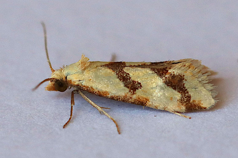 Very rare immigrant from central and southern Europe. First recorded in the UK in Devon in 2008 and Norfolk in 2018, with another caught at light in Woodlands, New Forest in 2024. Wingspan 10-15 mm. On the continent, larva feeds on Whorled Caraway and Rock Samphire.
