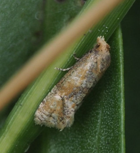 Common in birch woodland and on heathland throughout much of Britain. Frequent in Hampshire, but only one old record from the Isle of Wight. Wingspan 9-12 mm. A distinctive species, at once recognised by its small size and characteristic grey and ochreous general coloration, and the broad median fascia of the forewing with its outer margin outward-oblique from the costa and the inner margin diffuse and often confluent with the ill-defined basal fasciae [Bradley]. Larva feeds within catkins of Downy Birch and Silver Birch, over-wintering in a cocoon.